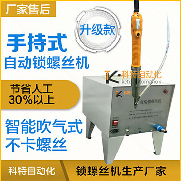 - 產(chǎn)品簡(jiǎn)介: 手持式自動(dòng)鎖螺絲機(jī)也叫手持式自動(dòng)螺絲機(jī)、自動(dòng)供料鎖螺絲機(jī)、自動(dòng)打螺絲機(jī)、自動(dòng)擰螺絲機(jī)等,嚴(yán)格來(lái)講,手持式只能算是半自動(dòng),因?yàn)樗€是需要手工操作。一臺(tái)手持式自動(dòng)鎖螺絲機(jī)主要由兩部分組成:自動(dòng)供料機(jī)和電批,其中自動(dòng)供料機(jī)是最重要的,也是最復(fù)雜的,它的好壞直接關(guān)系到機(jī)器卡不卡料的問(wèn)題。